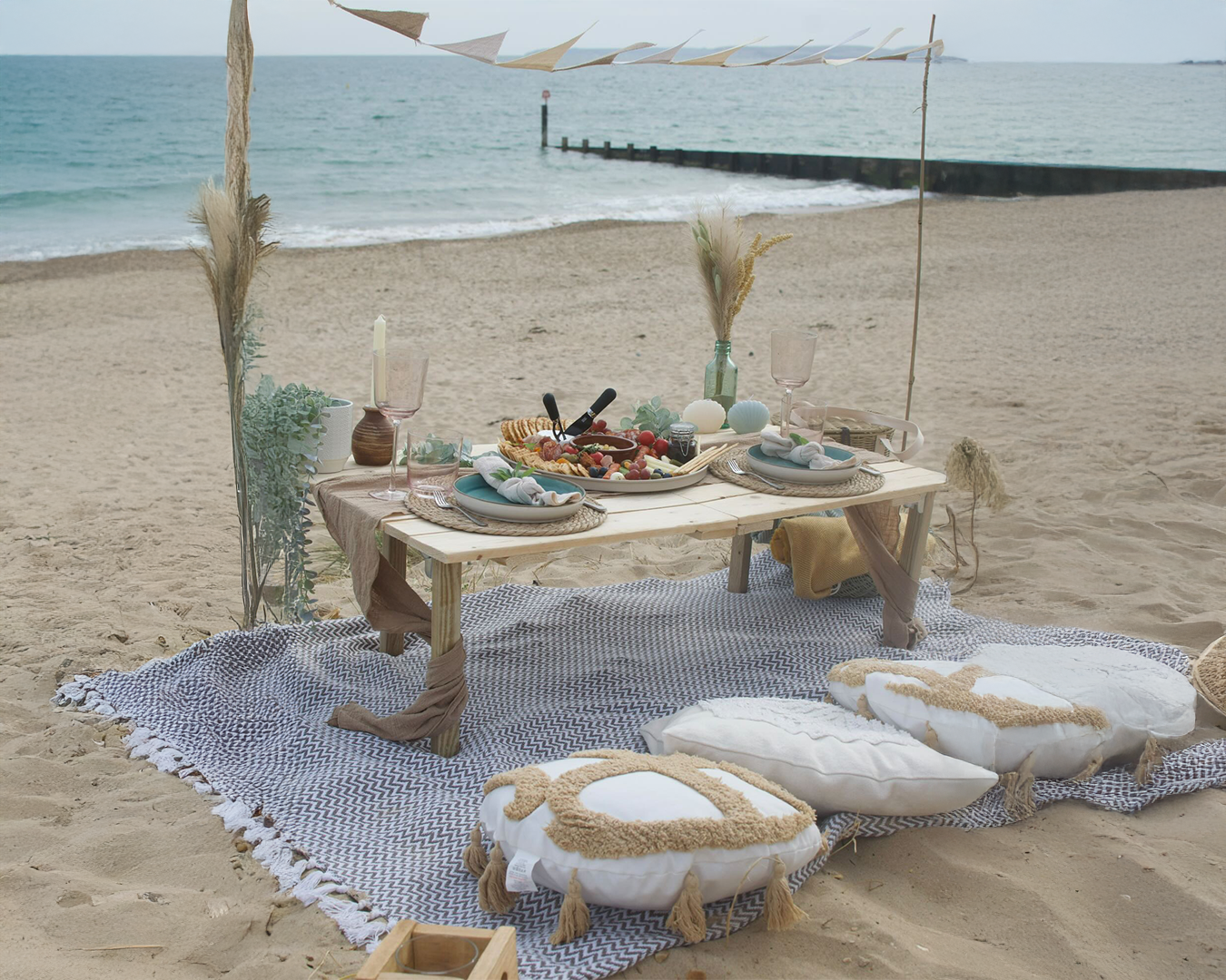 Our coastal picnics are the perfect seaside escape, we create beautiful stress-free experiences so you can simply relax and enjoy. Each picnic includes a thoughtfully styled set up featuring cozy blankets, soft cushions, elegant tableware and charming coastal decor. To make the moment even more special, we serve handcrafted charcuterie boards that include cheeses, cured meats, crackers & chutney, hummus and all sorts of yummy nibbles. Whether its a romantic date night or a family celebration, we take care of everything and you just show up & enjoy!